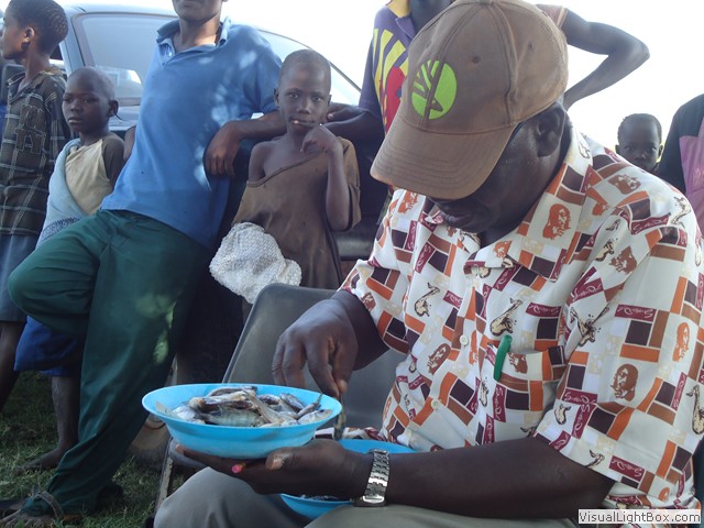 like the African catfish and the lungfish, growing crops and grazing livestock in the lakeside areas