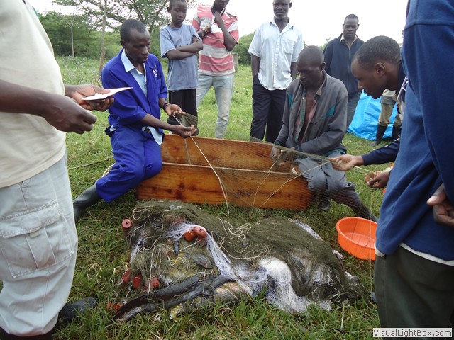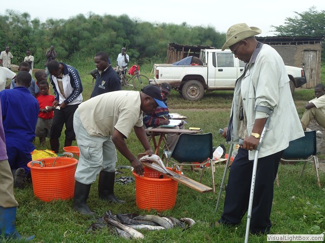 like the African catfish and the lungfish, growing crops and grazing livestock in the lakeside areas