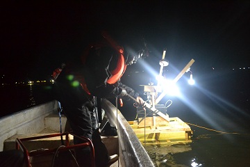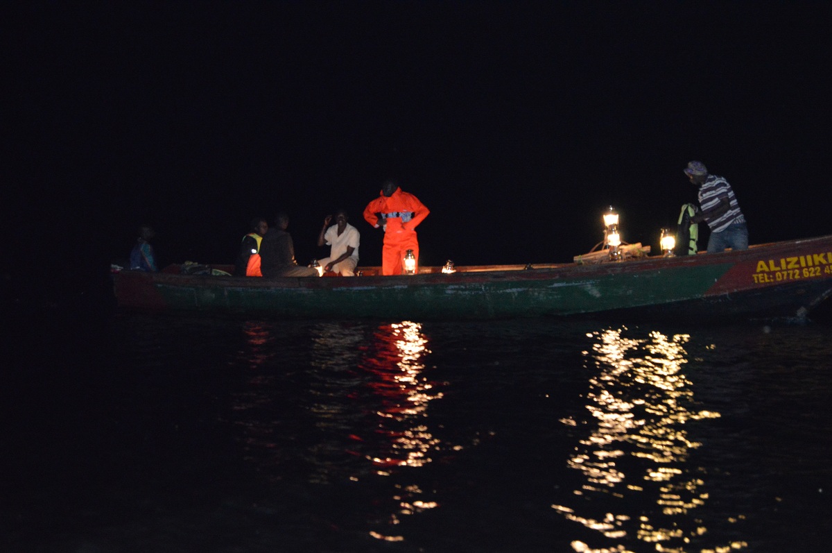 NaFIRRI scietists work involve being on the lake at night Carol Nabwire recording data.