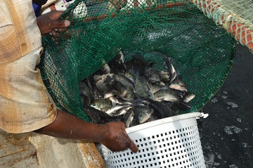 Experimental cage fish harvesting