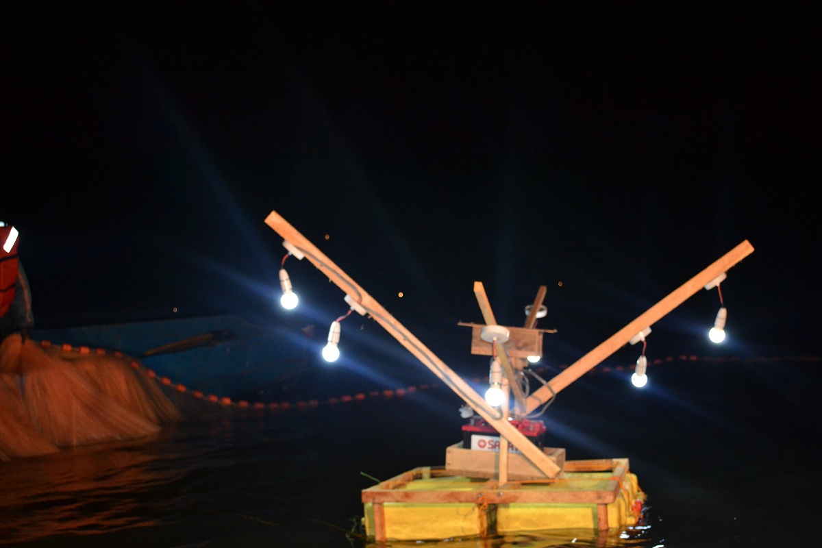 Final touches on preparation of solar light rafts for mekene fishing