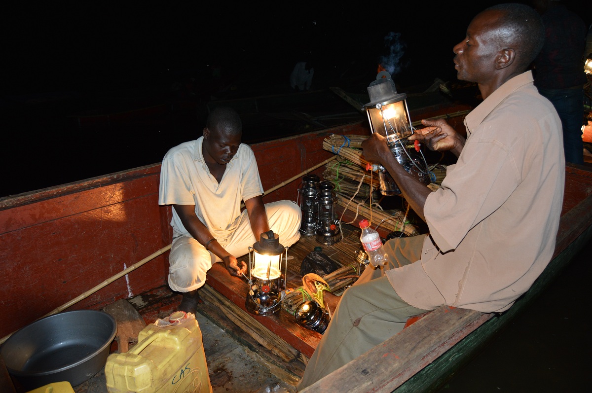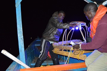 NaFIRRI scietists work involve being on the lake at night Carol Nabwire recording data.