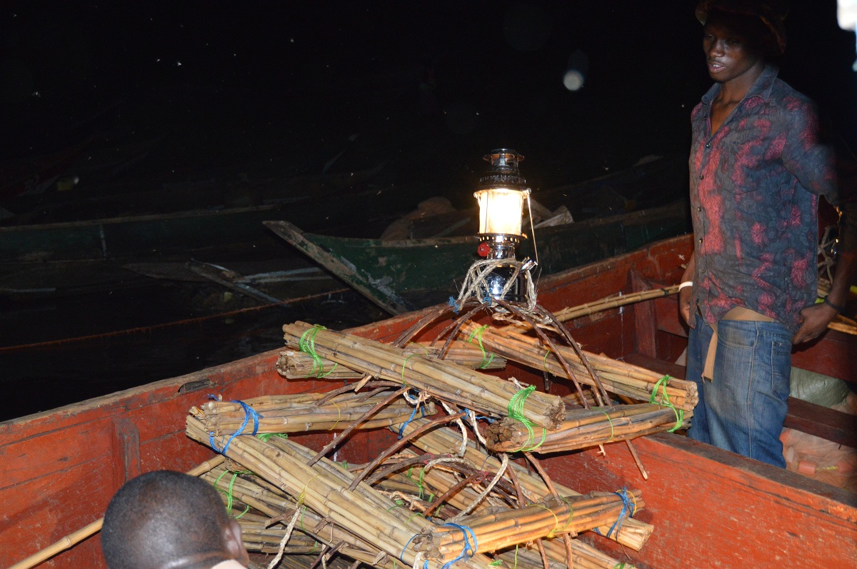 Tradional kerosene mukene lamp munted on a local raft.