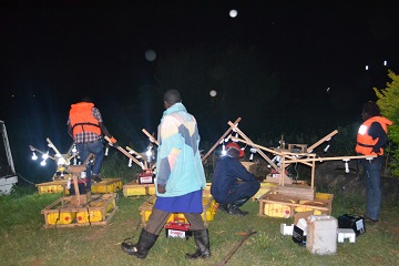 NaFIRRI scietist deploying experimental kerosene lamps.