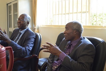 Dr.Mohamed Seisay(left) head of AU IBAR verification mission with a former Director NaFIRRI Prof. Bugenyi.